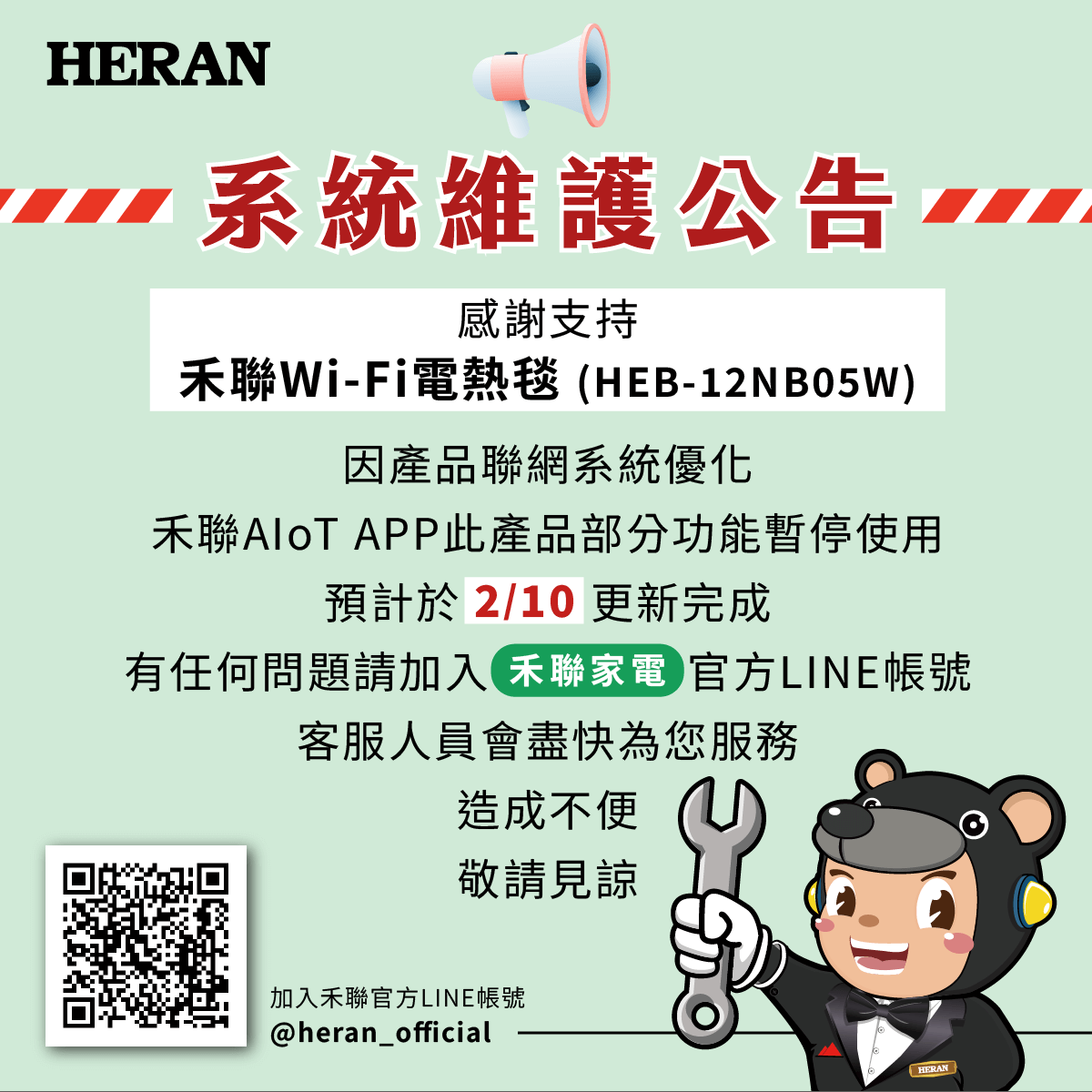 感謝您對 WiFi 電熱毯 HEB–12NB05W 的支持。